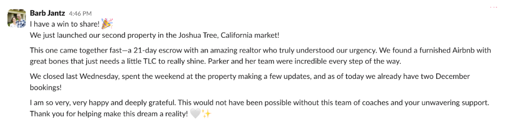 "I mean, honestly, it's an investment. It was a big decision for us… and the fear was like, okay, well, am I really going to get what I put into this? And so far, it has wildly exceeded what I thought it would be. The community — not just the coaches, but even people who might be your direct competition — everyone is here to help you, which is also not normal in regular day-to-day stuff.”